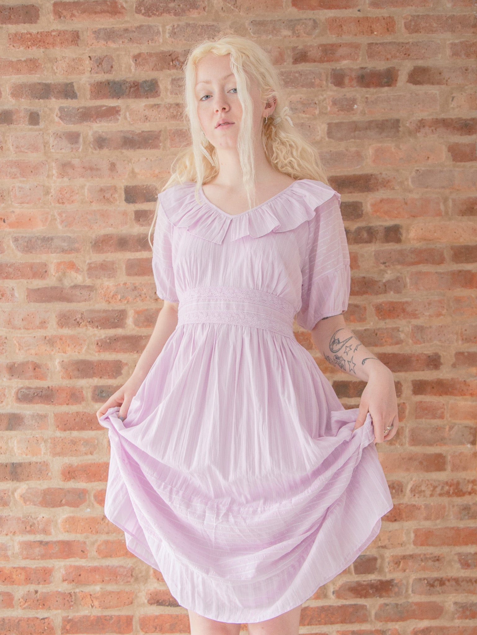 The Viola Dress is a timelessly stylish option with its charming vintage-inspired design. Crafted with lace contrast details, this dress offers a soft, feminine and timeless look.